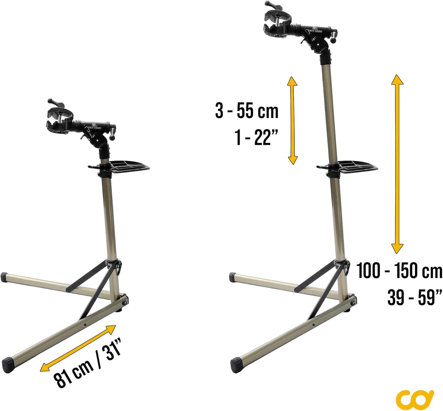 Lightweight, strong, and easy to use, this alloy aluminum repair stand is built for both home and professional use. It folds down compactly for storage or transport, while the 360° rotating head and adjustable height make it simple to position your bike perfectly. A magnetic tool tray keeps everything within reach, and its durable construction is backed by a 5-year warranty.