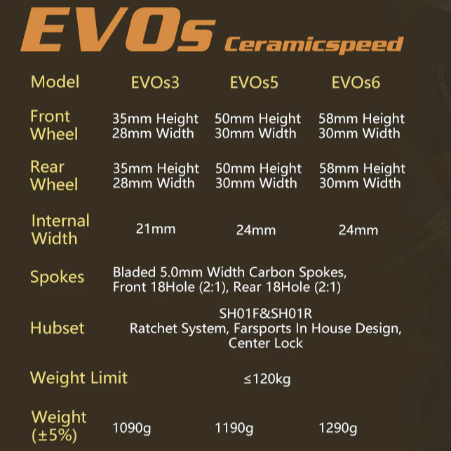 EVO Wheelsets use a lighter rim than the S-Series with a premium raw carbon finish and silver decals, with Ceramicspeed* bearings throughout.