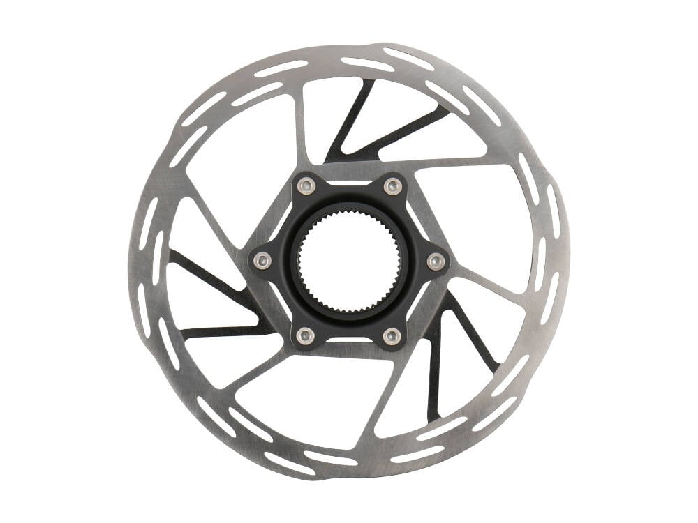 The Paceline brake rotors take up the elegant design of the AXS Road groupsets. With their optimized ventilation holes, they ensure smooth and low-vibration braking performance. The rounded edges on the top of the rotor minimize the risk of injury and comply with the guidelines of the UCI cycling world federation. Another advantage is that they make it easier to install the wheel, as the rounded top prevents the brake caliper from jamming.