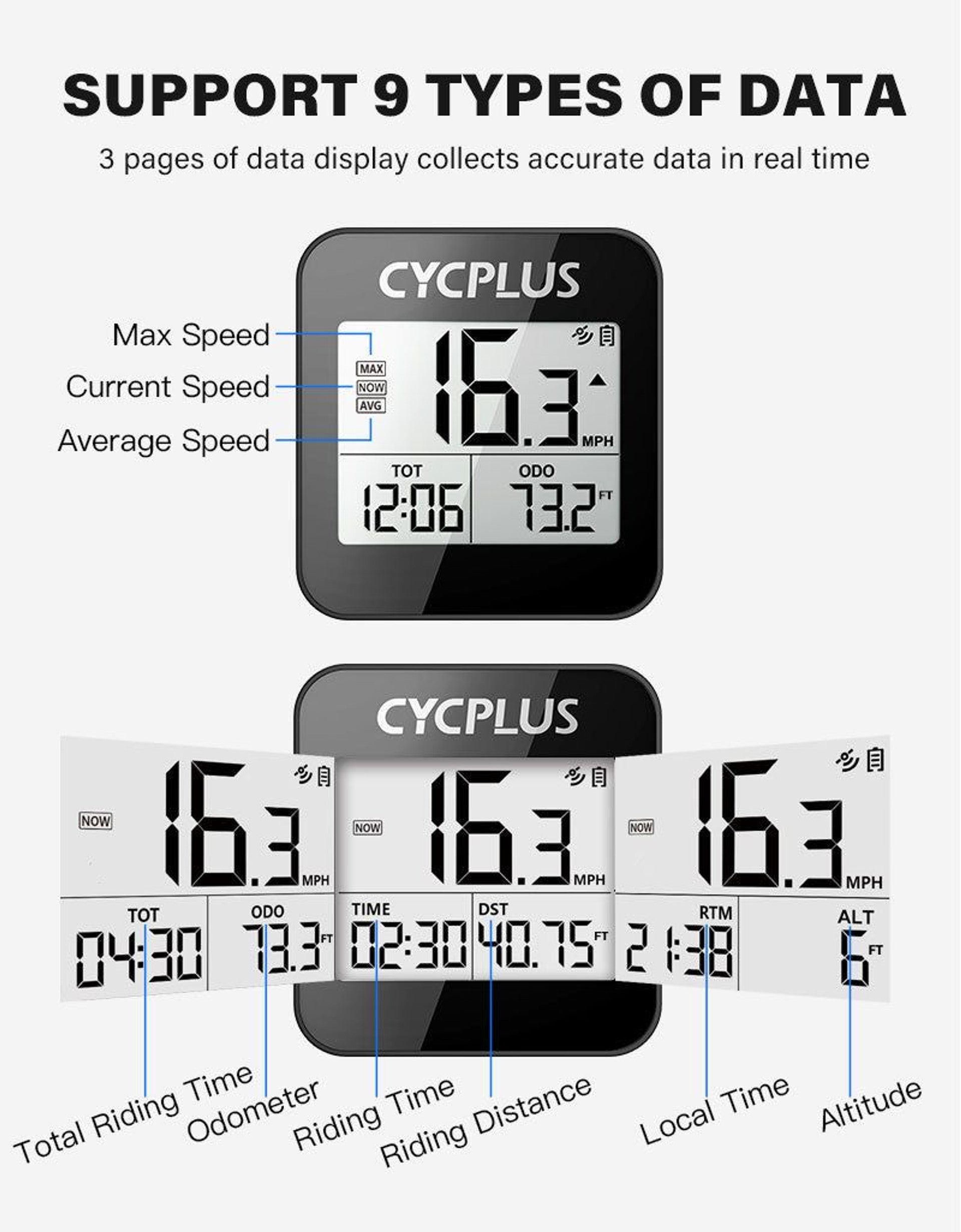 he Cycplus G1 GPS Cycling Computer is lightweight and compact. It has a high quality, navigating chip with built-in positional systems. It supports GPS, Beidou, Glonass and Galileo and is incredibly accurate. It has 9 functions.
