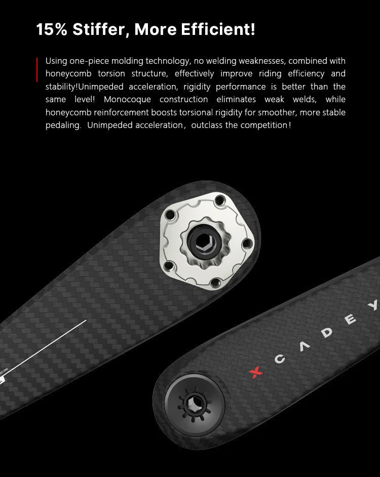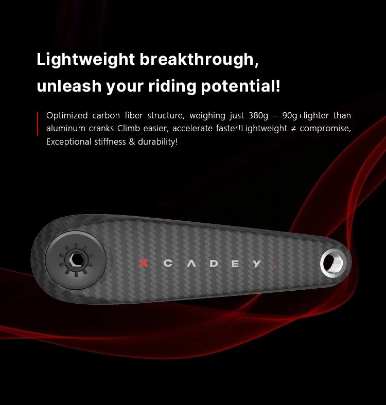 Riding the crest of China’s high-tech component surge, X-Cadey's Ventus Carbon Crankset delivers a precision-crafted, ultralight carbon crank with integrated dual-leg power meter, 150-hour run time, and full 24mm spindle (Shimano) compatibility. Available in compact sizes like the all-popular 165 mm, it offers both power-meter functionality and crank-length optimization for next-level comfort, fit, and performance.