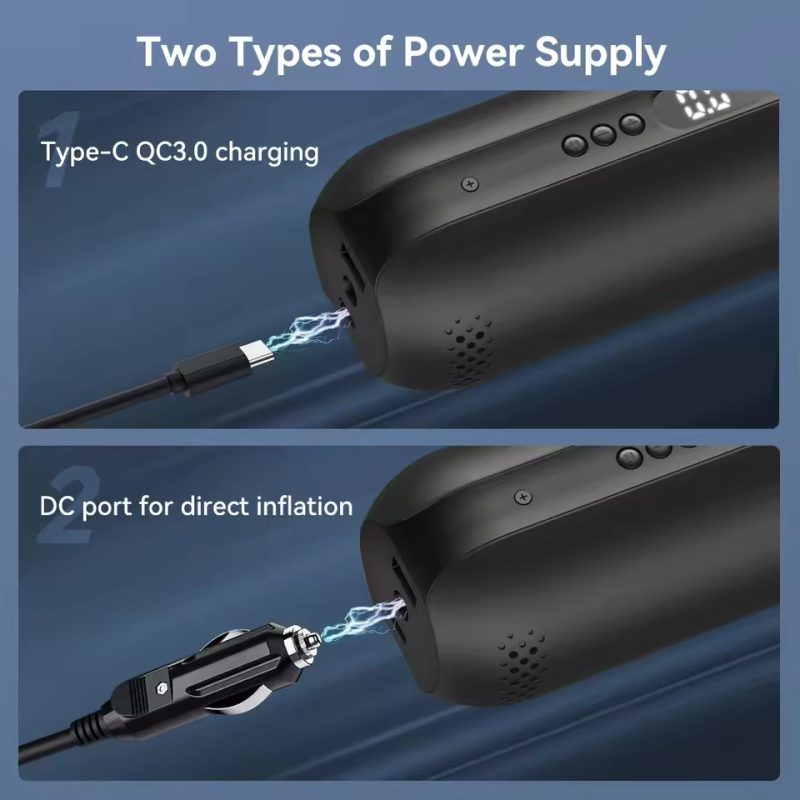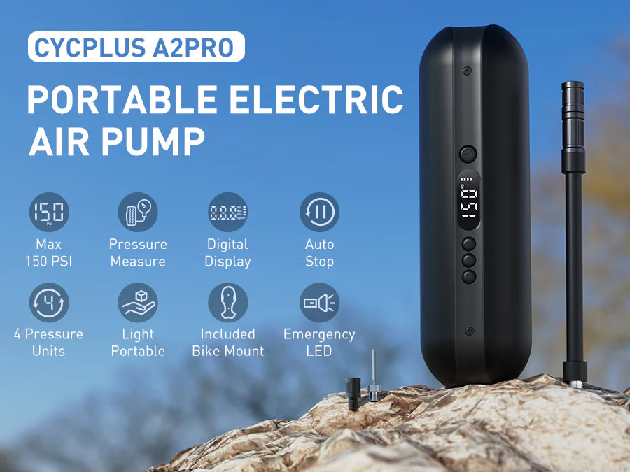 Cycplus Mini Tyre Inflator - small, compact, convenient inflator that you can take anywhere to inflate balls, bike/moto/or car tyres. tuck it under your seat in the car or your motorcycle/scooter, mount to your bicycle frame, or carry in your backpack. Easy to use and easy to carry.