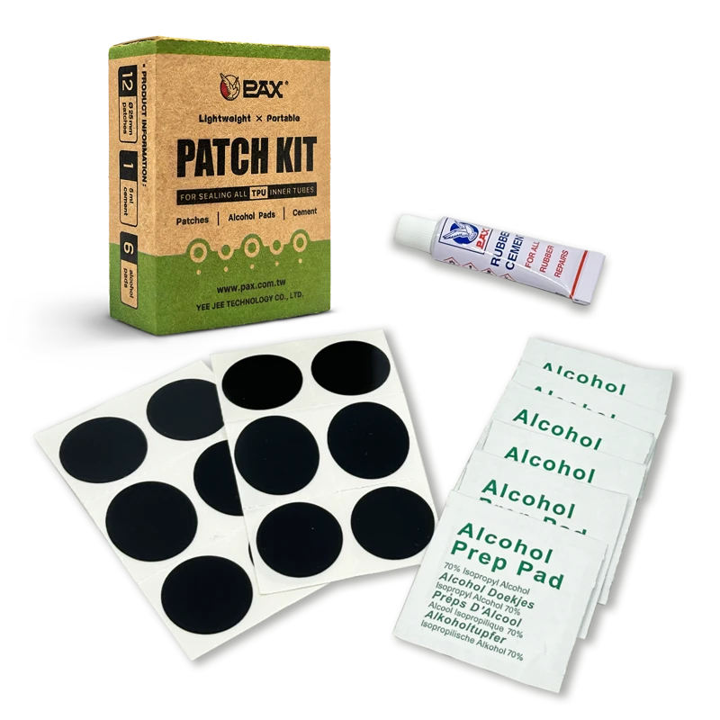 A complete 12-piece TPU tube repair kit from PAX - fast, dependable fixes for punctured TPU inner tubes. Includes quality TPU patches and all the essentials you need to get rolling again quickly.