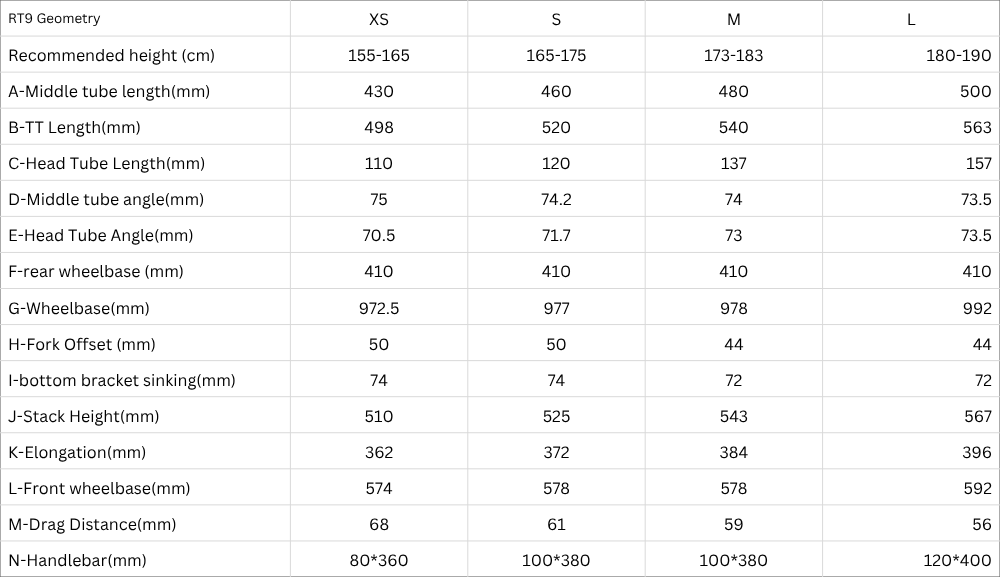The RT9 features a lightweight carbon frame, weighing around 560 grams, making it one of the lightest in its class. The frame geometry is optimized for climbing, with round tube shapes and integrated cable routing to reduce drag. This design is inspired by models like the Specialized Aethos, emphasizing agility and responsiveness on ascents.